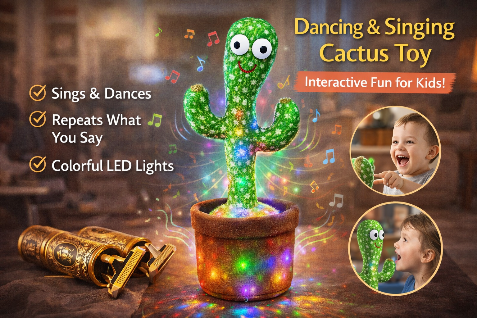 Happy Dancing Cactus Toy – Talking, Shaking & Musical Kids Toy