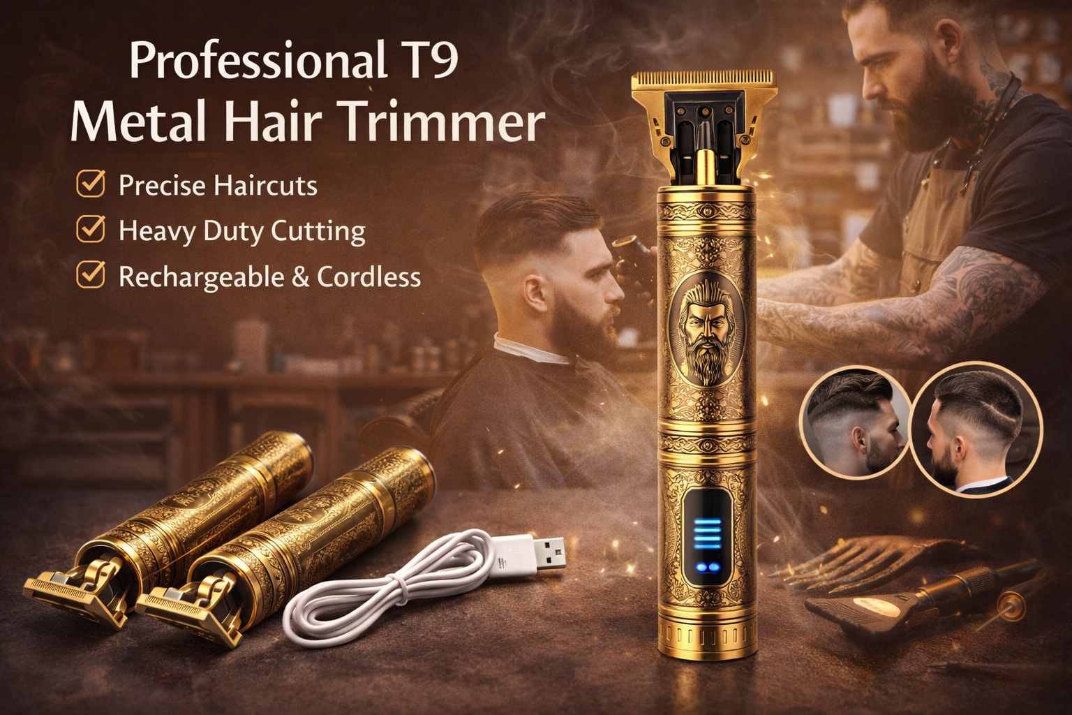 T9 Professional Hair Trimmer Machine for Men – USB Rechargeable